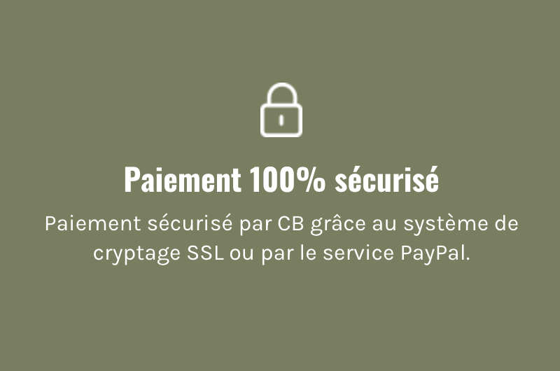 Paiement sécurisé par CB grâce au système de cryptage SSL ou par le service PayPal.