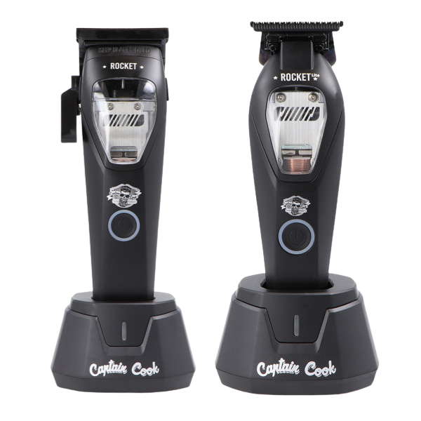 Le Duo Captain Cook ROCKET incarne la nouvelle génération d’outils de coupe haute technologie. Pensé pour les coiffeurs et barbiers exigeants, ce pack associe la ROCKET, une tondeuse de coupe vectorielle puissante et endurante, et la ROCKET LITE, une tondeuse de finition précise et ultra-maniable. Ensemble, elles offrent performance, confort et polyvalence pour sublimer chaque détail, du dégradé le plus fondu aux contours les plus nets.